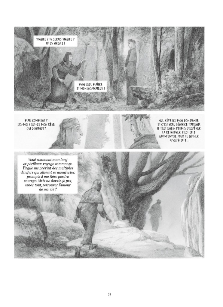 « Nul rêve ici, mon bon Dante, et c’est vrai, Béatrice t’attend. Il t’est enfin permis d’espérer la retrouver. C’est elle qui m’envoie pour te guider jusqu’à elle… »